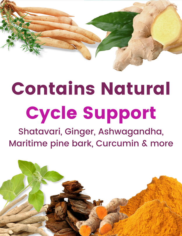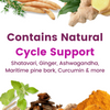 Comfort Support: Curcumin, Ginger, and Maritime Pine Bark contribute to physical comfort and ease throughout your cycle.