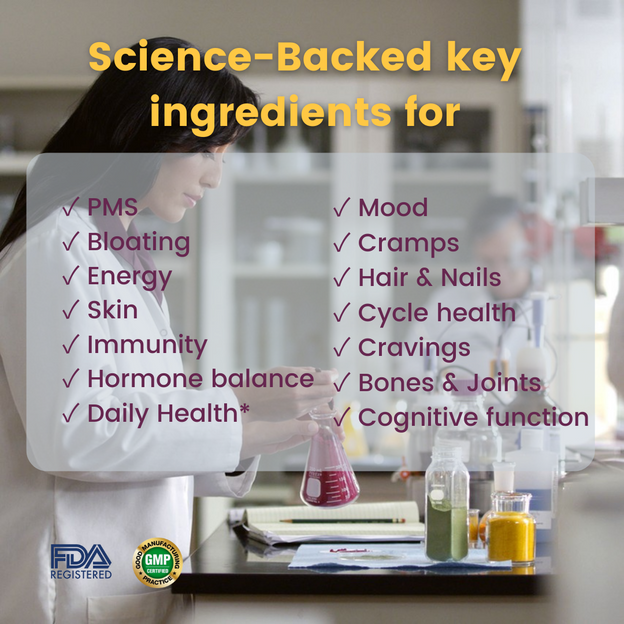 Our premium ingredients work in harmony to support your body's natural processes, helping you feel balanced and confident every day.