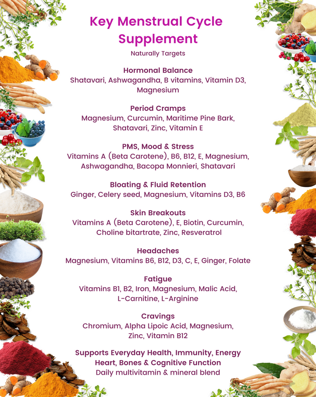 Key Menstrual Cycle contains a blend of 38 active ingredients, thoughtfully selected to support your monthly wellness: