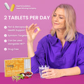 This premium supplement supports women through their natural menopause journey with a comprehensive, research-backed blend of ingredients. More than just a multivitamin, this thoughtfully crafted formula includes specially selected natural ingredients to support your wellness during this life stage. It's vegan, gluten-free, and designed to fit seamlessly into the busiest routines.